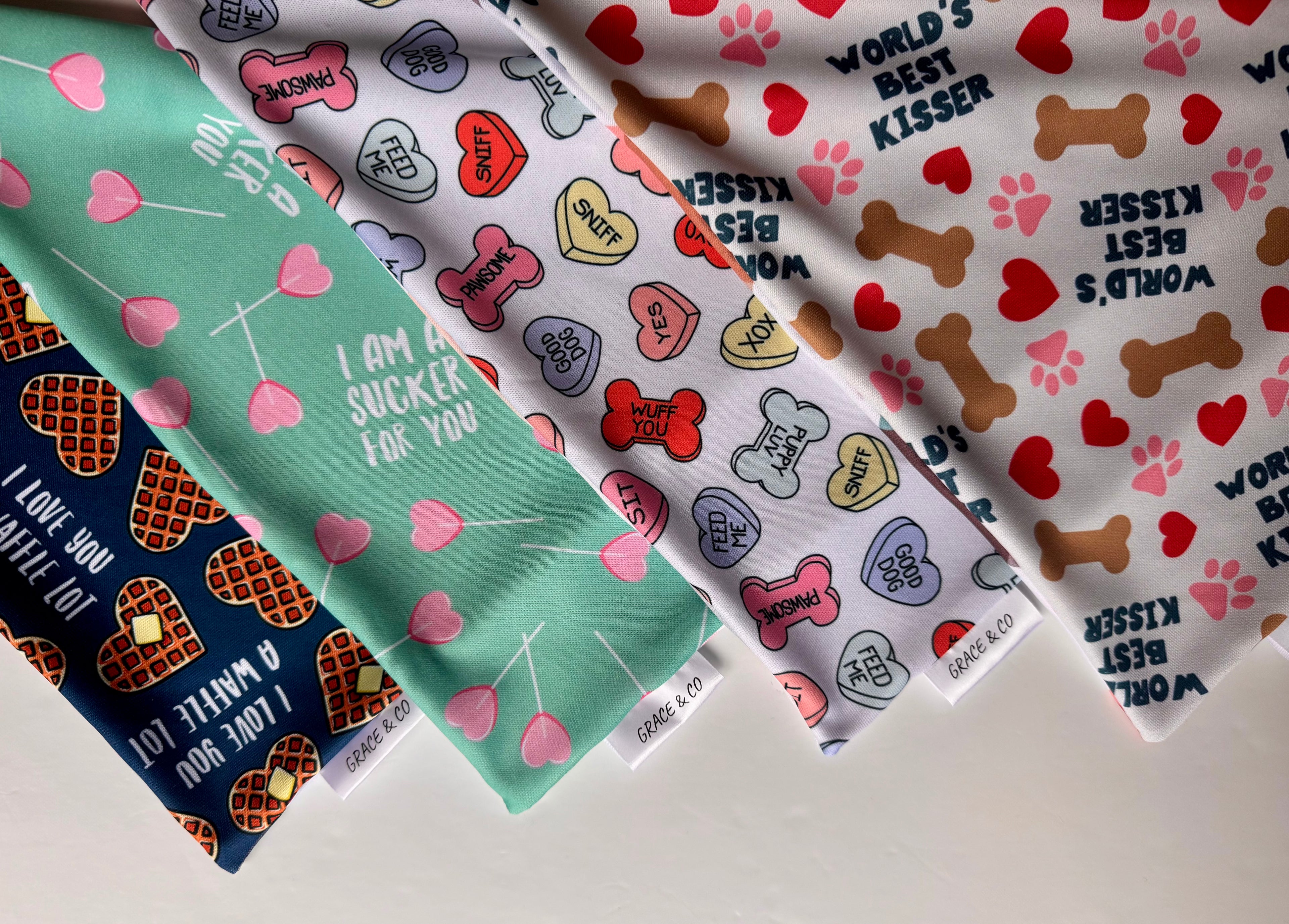 We will be sharing new bandanas, bows, and scrunchies on a regular basis. To stay up to date, give us a follow on Instagram, the.grace.and.co, or Facebook, GRACE & CO.