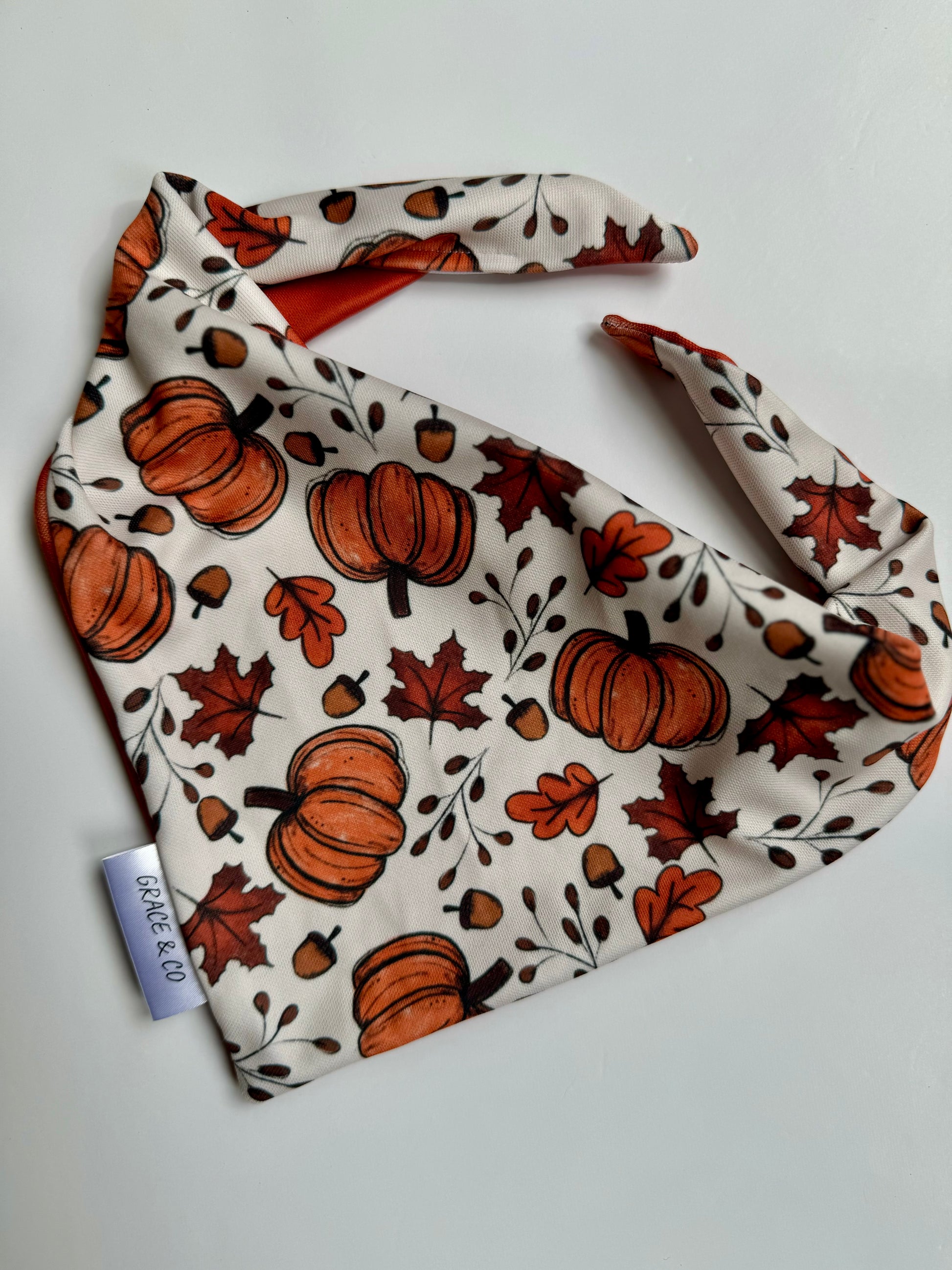 Autumn Leaves & Acorns; 2 in 1 Double Sided Dog Bandana; water resistant