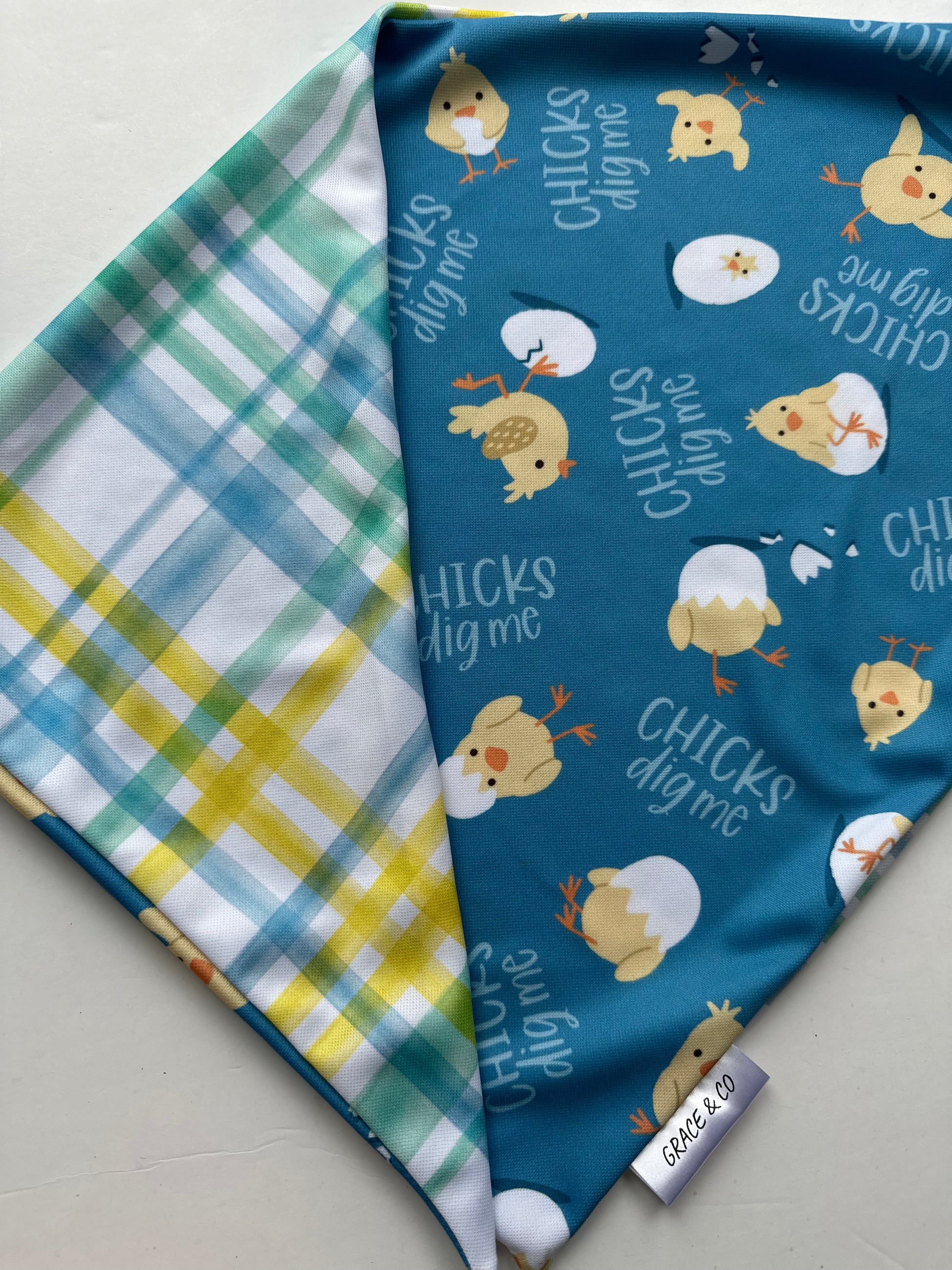 Chick's Dig Me, Double Sided Easter Bandana w/ Brass Snaps