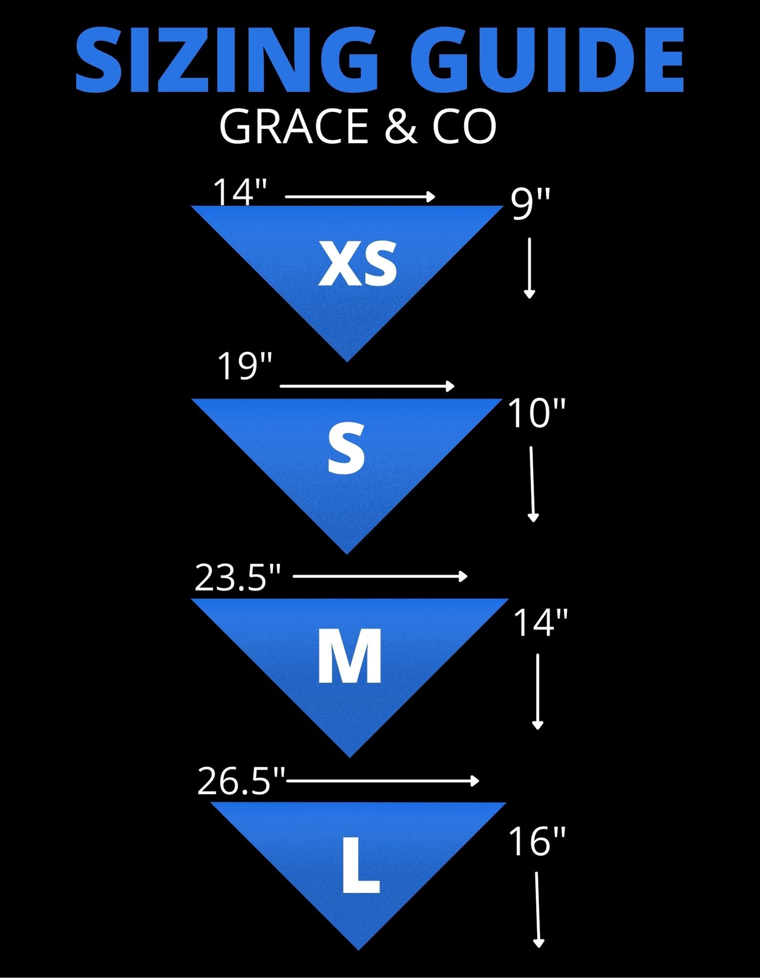Extra Small - 15" across MAX 14." (Snap Only) MIN 10 - 13" ( Tie & Snap)