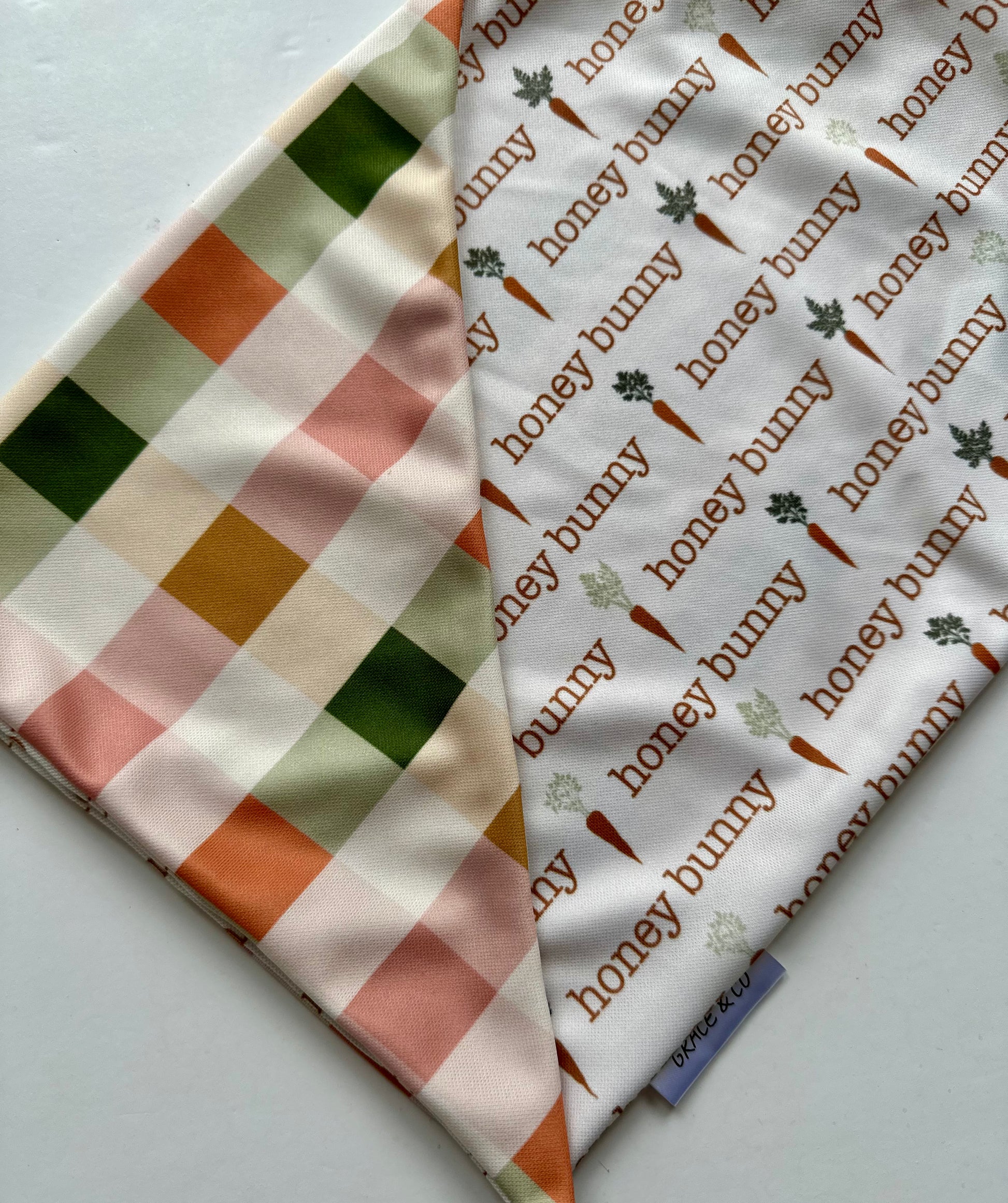 Honey Bunny, Double Sided Easter Bandana w/ Brass Snaps