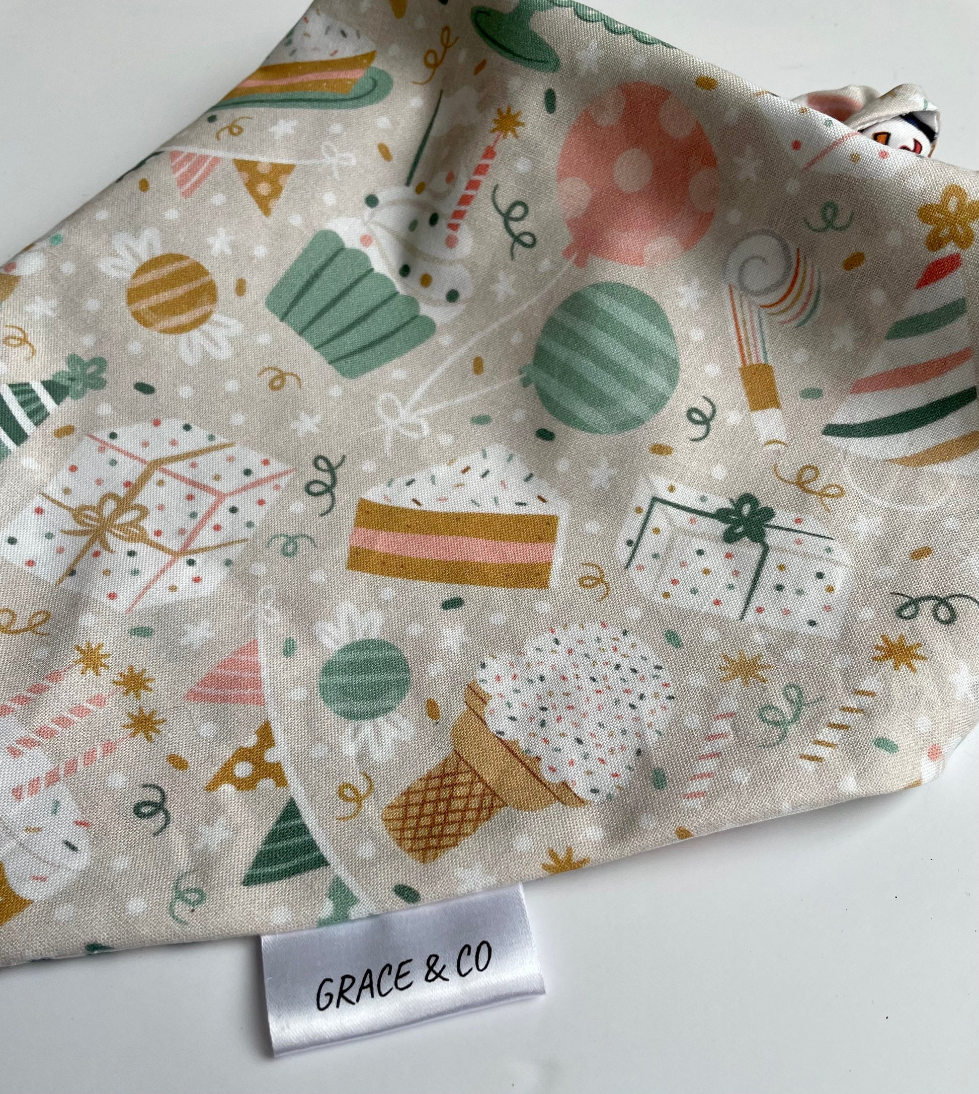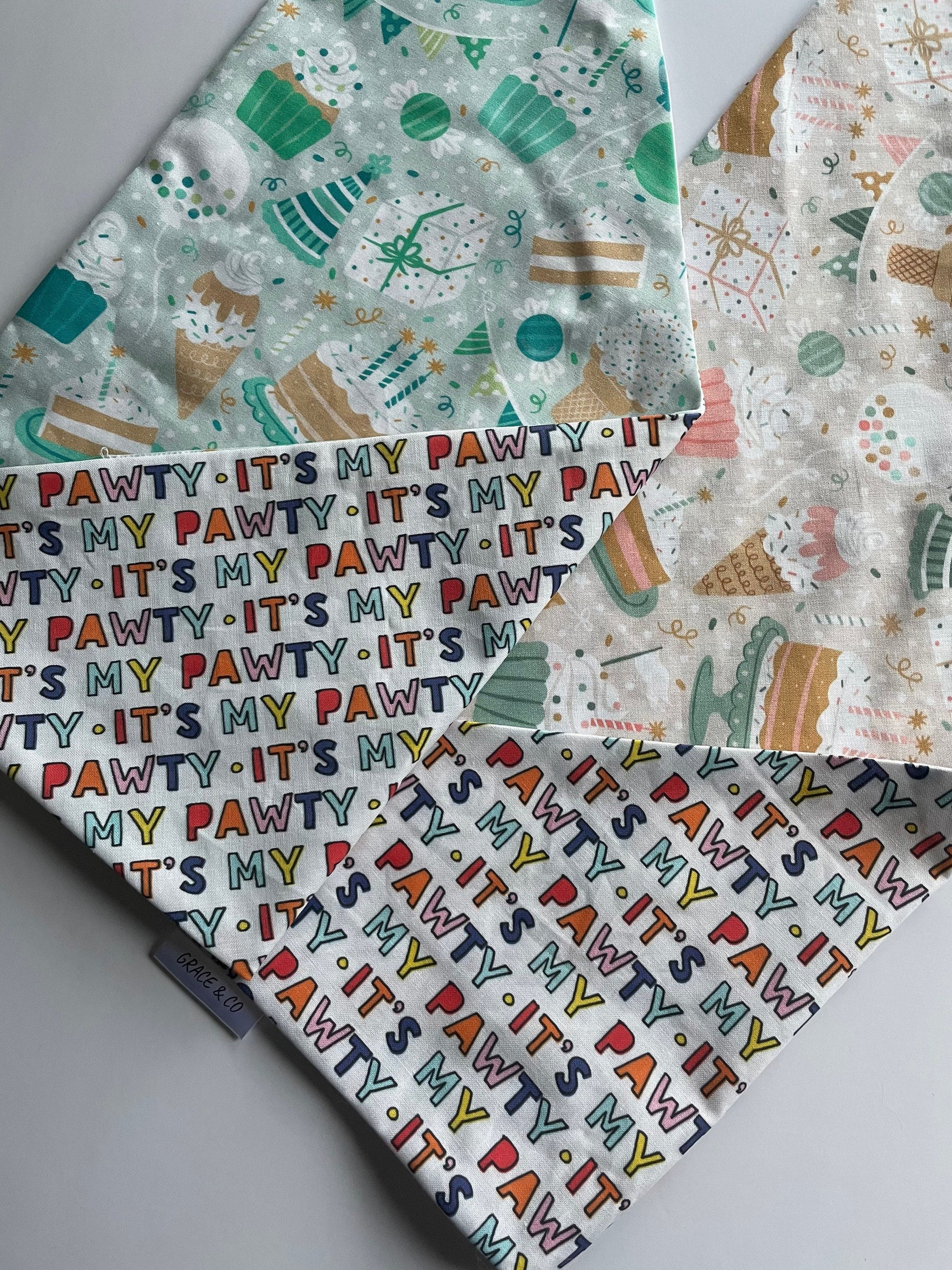 Double Sided Birthday Pup Bandana w/ Brass Snaps