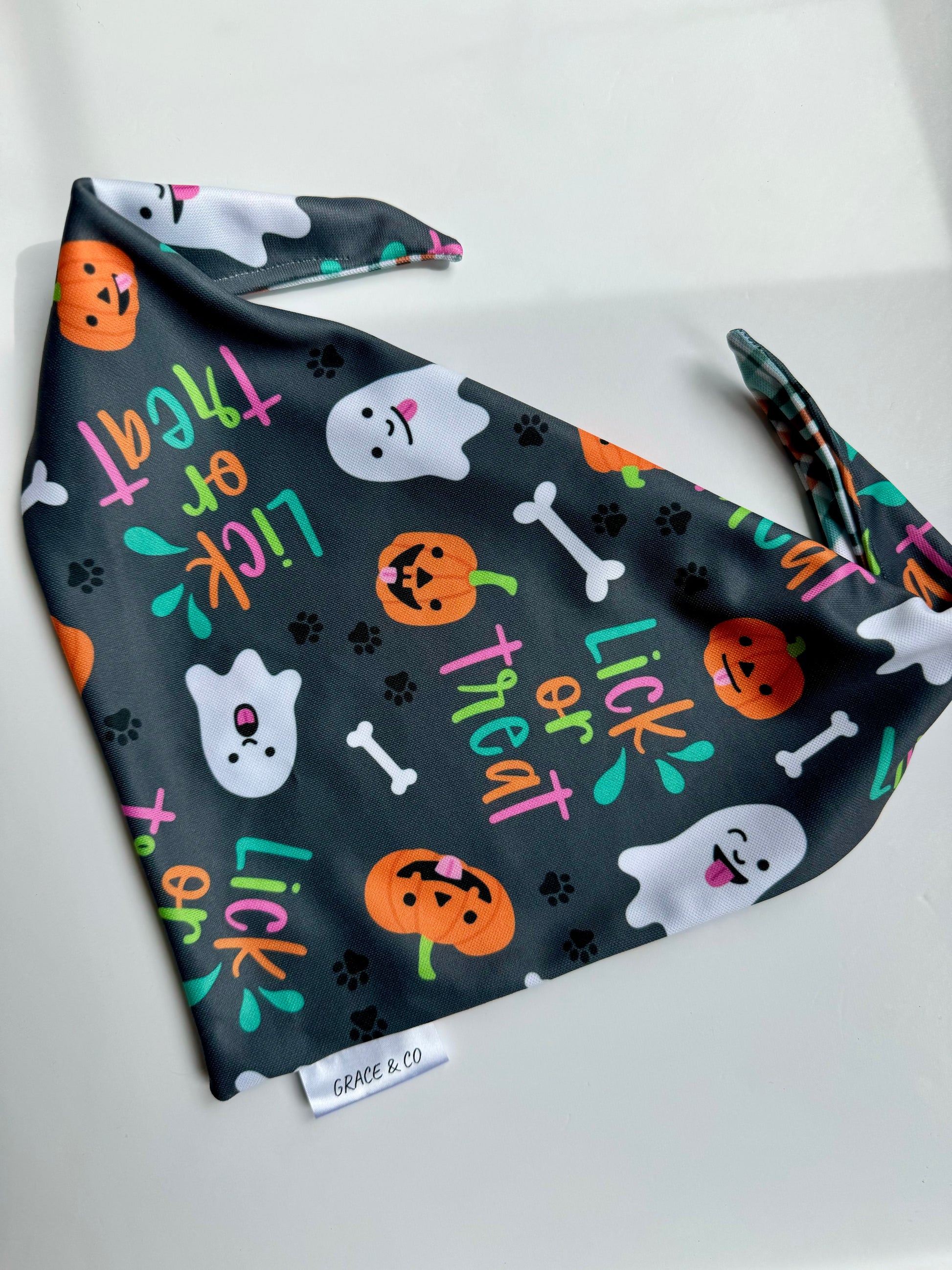 Lick or Treat; 2 in 1 Double Sided Halloween Dog Bandana