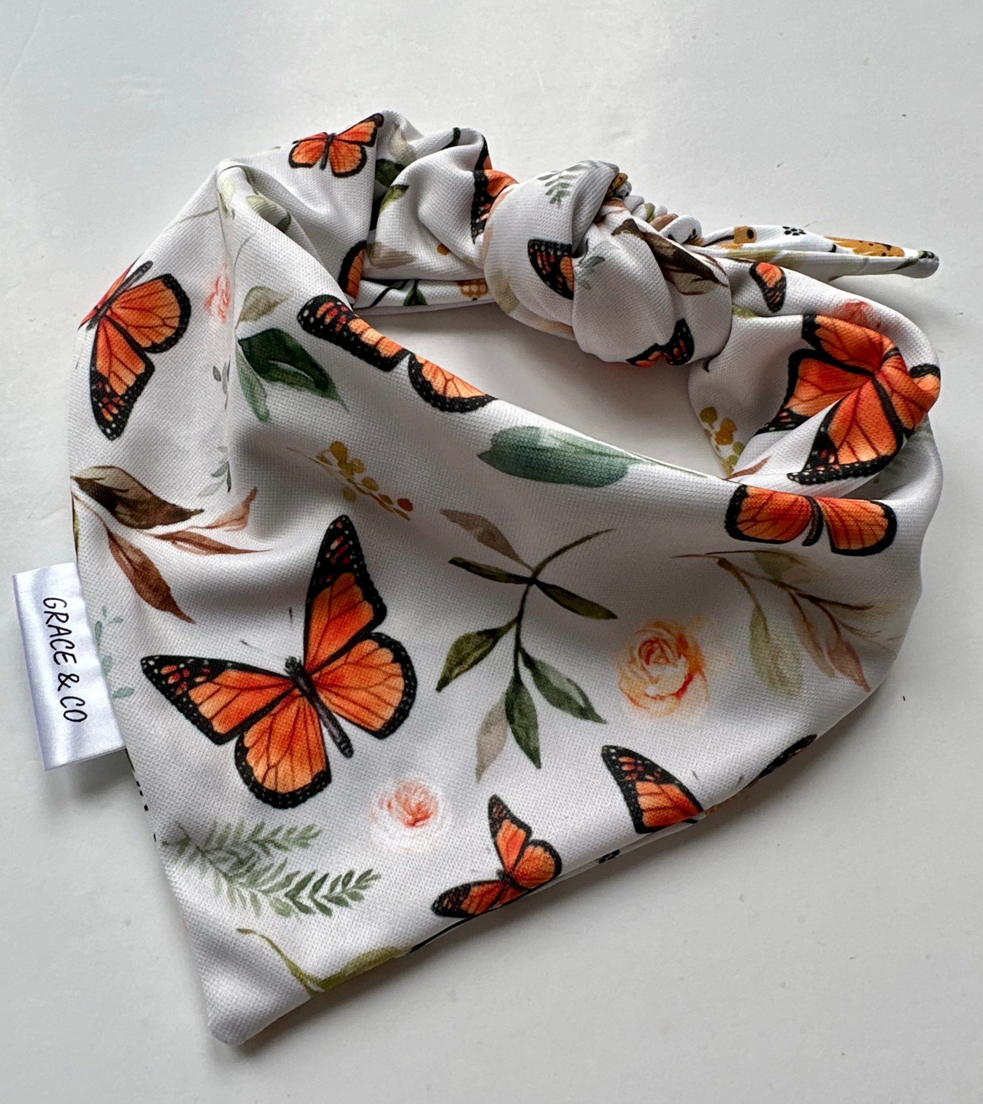 Spring Flowers and Butterflies, Double Sided Dog Bandana w/ Brass Snaps